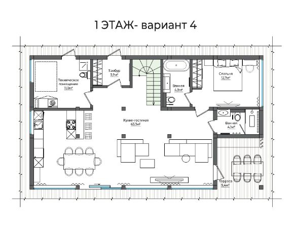Проект легко адаптируется под участок, желаемую планировку и отделку.
